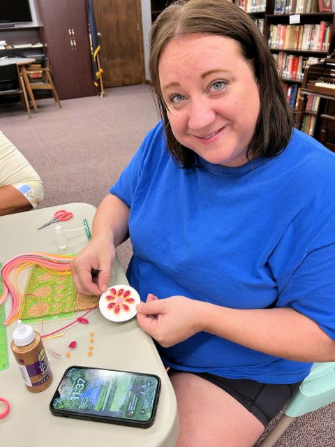 The library hosted Karla Griesert as she taught a group of wonderful ladies the art of quilling. Quilling is a technique using thin strips to make pictures. Everyone really seemed to enjoy themselves and took home a new artistic skill.