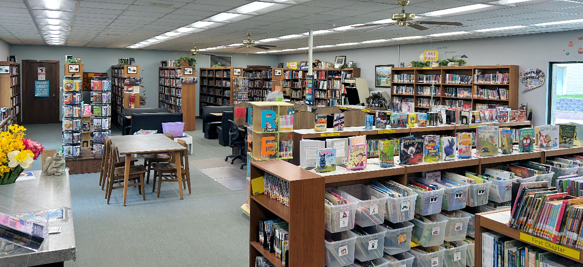 At the south end of the main room, you will find shelves of adult fiction, non-fiction, large print, biography, reference, Nebraska authors, genealogy books, puzzles, games and more.