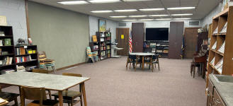 The main library room is the focal point of our library. In the main room, you will find a children’s area filled with board books, picture books, easy readers and first chapter books. We also have shelves of puzzle for small children and tables with easy crafts and coloring pages.