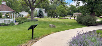 The back yard is filled with lovely landscaping. There is a gazebo that can be used for quite time or a visit with a friend. For the children there are instruments for them to show their musical side as well as a story book walk that goes down the west side of the building and continues a path through the back yard.