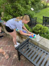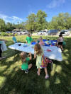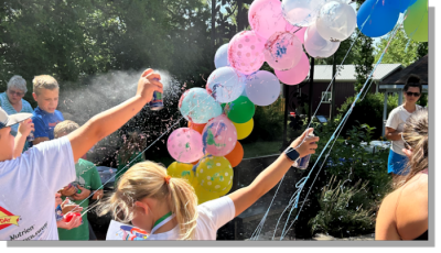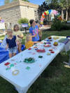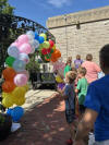 At end the program, and this year's summer reading, all the children had a chance to spray silly string at our rainbow balloon arch. They had a great time.