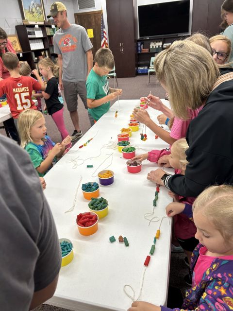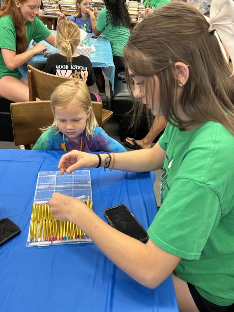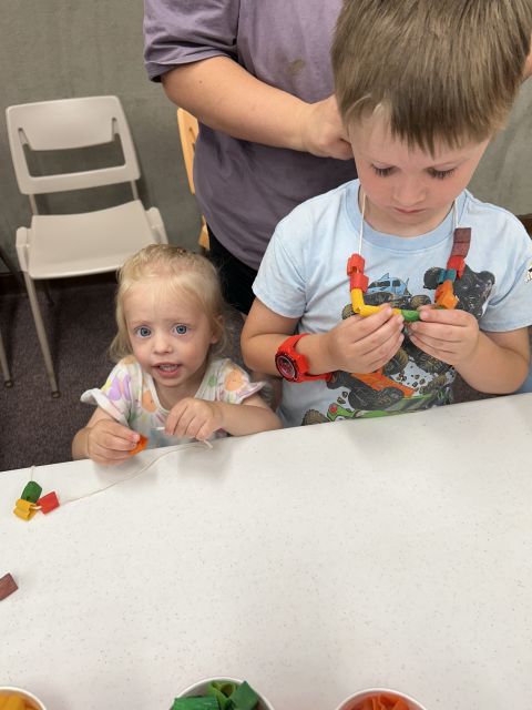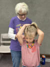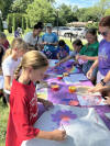Week three's theme was Colors Galore and gave us a story about how some crayons saved the rainbows. The children made suncatchers out of clear glue and colored beads. They also made colorful necklaces out of dyed pasta. The WCHS Cheerleaders were here and did face painting which the children really enjoyed.
